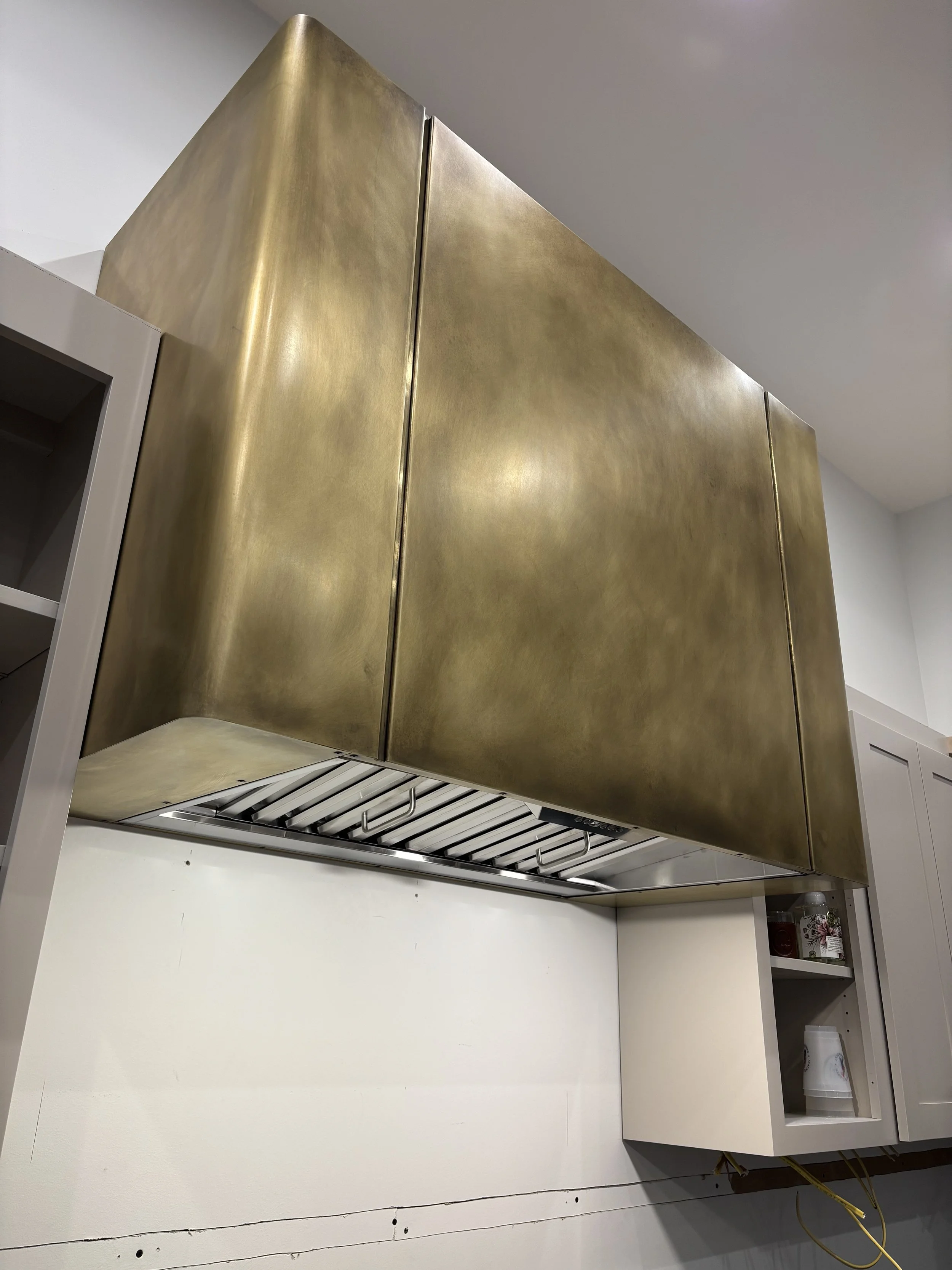 Zinc, copper and brass are known as living metals and will age over time, this is called “patina”. We offer beautiful pre-patina treatments to give an artistic look to your range hood. Check them out below!